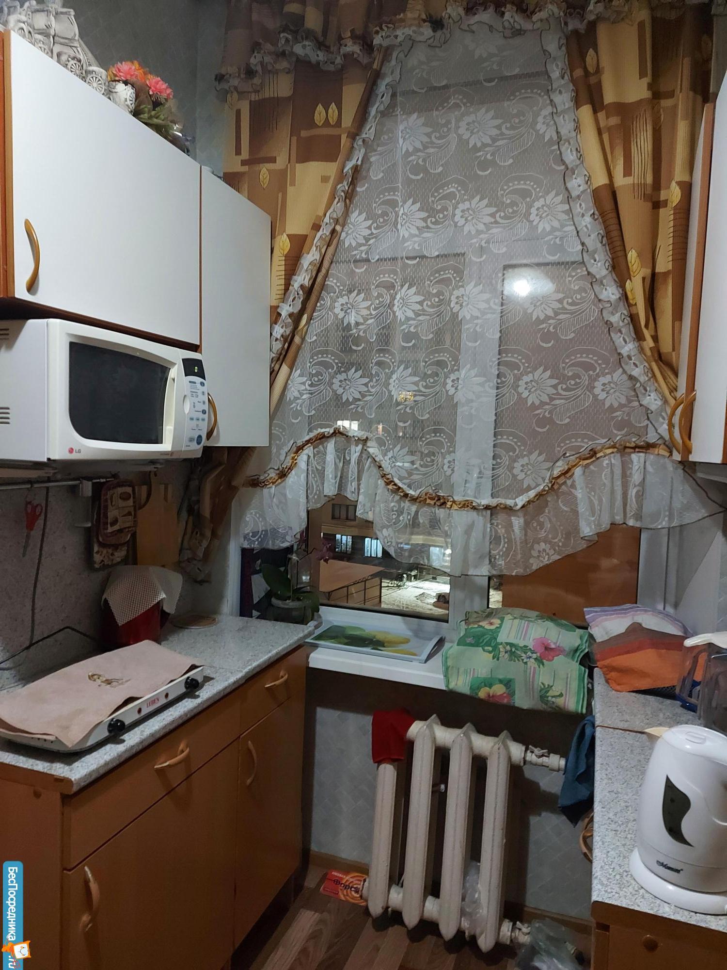 Имеется своя мини кухня с прихожей, рассчитанная на две комнаты. В соседней комнате живёт одна порядочная женщина.