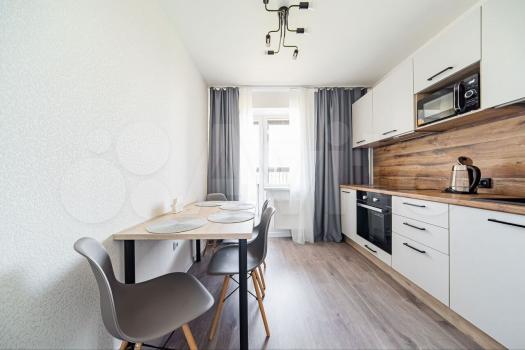 Новое качество и стиль: квартира укомплектована современной мебелью и техникой.