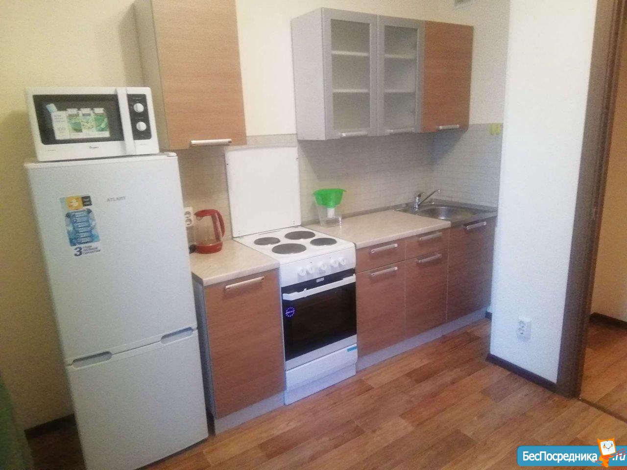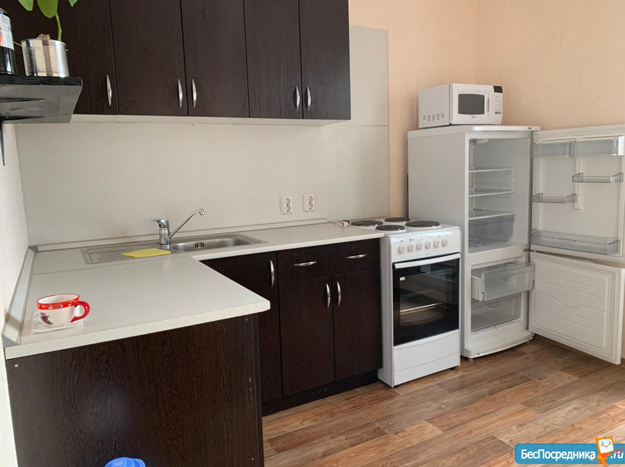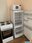 В квартире установлена вся необходимая бытовая техника, кухонная мебель, диван, шкаф.