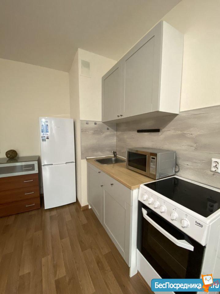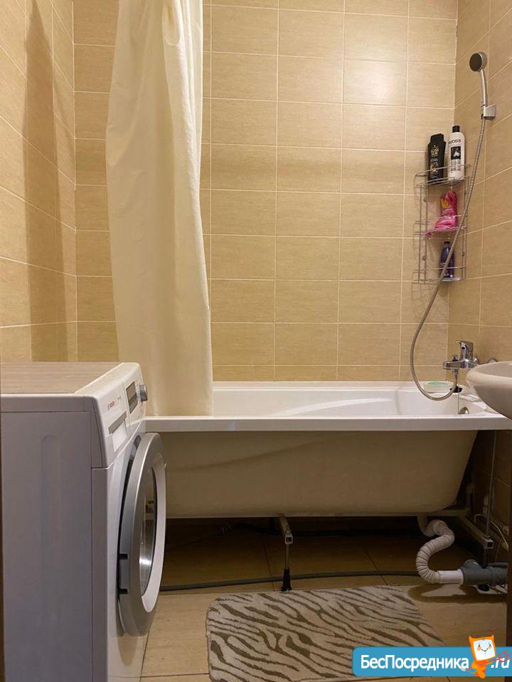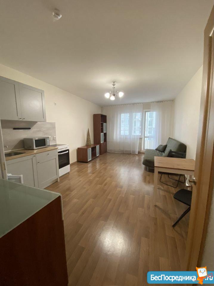 Сдам в новом доме уютную студию. Стиральная машина, плита, холодильник, микроволновка. Большой балкон.