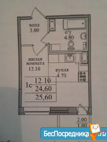 Сдается студия без мебели. Ремонт от застройщика. Долгосрочно.