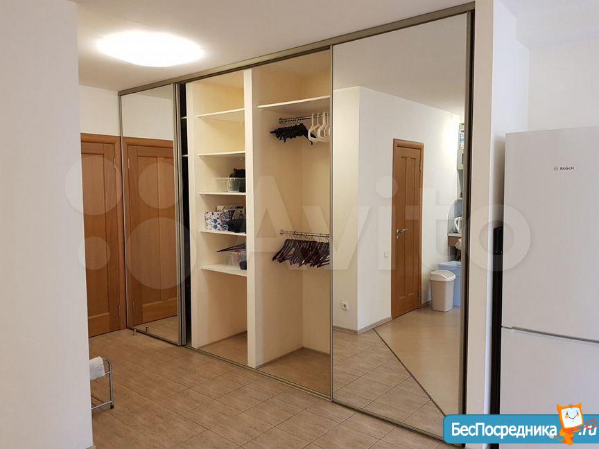 В прихожей - финский 4-х метровый зеркальный шкаф-купе