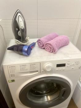 ?Для комфорта имеется утюг и гладильная доска, сушилка для белья, стремянка, два комплекта постельного белья, одеяло, две подушки, плед, фен, полотенца, вешалки для одежды, ручной проводной пылесос.