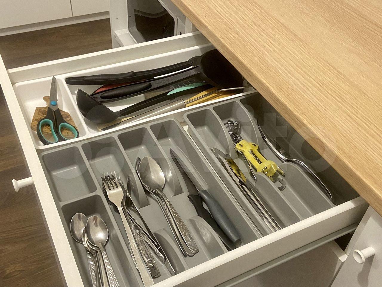 ?Имеется полноценная кухня(с подсветкой) со встраиваемым холодильником (с морозильной камерой), вытяжка, индукционная плита, микроволновая печь, чайник, фильтры для питьевой воды, посуда (тарелки, кружки,приборы).