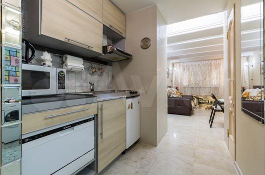 Есть все для удобной и качественной жизни: разные варианты освещения, гардеробная комната, небольшая гостиная с распашными дверьми на кухню.