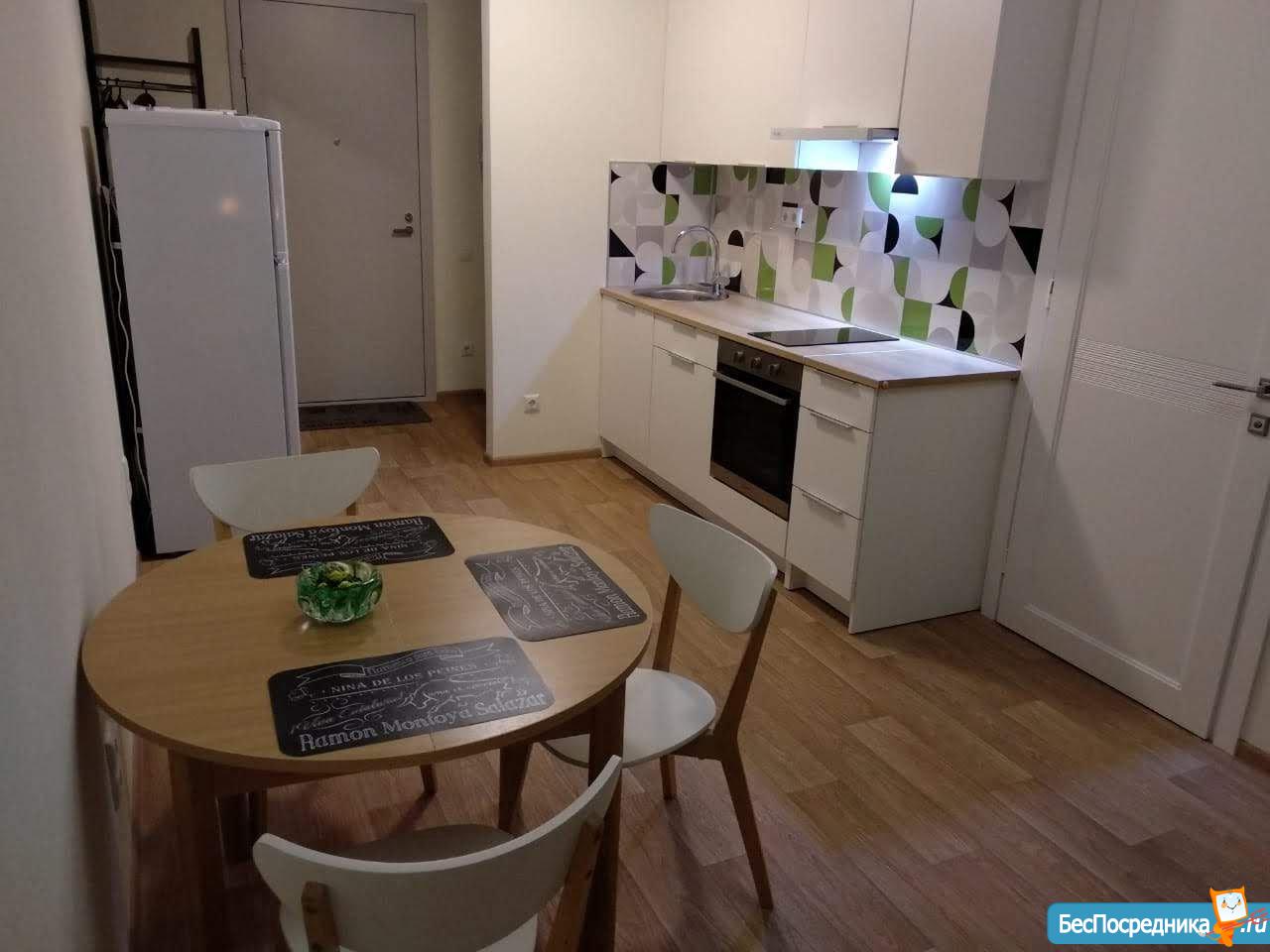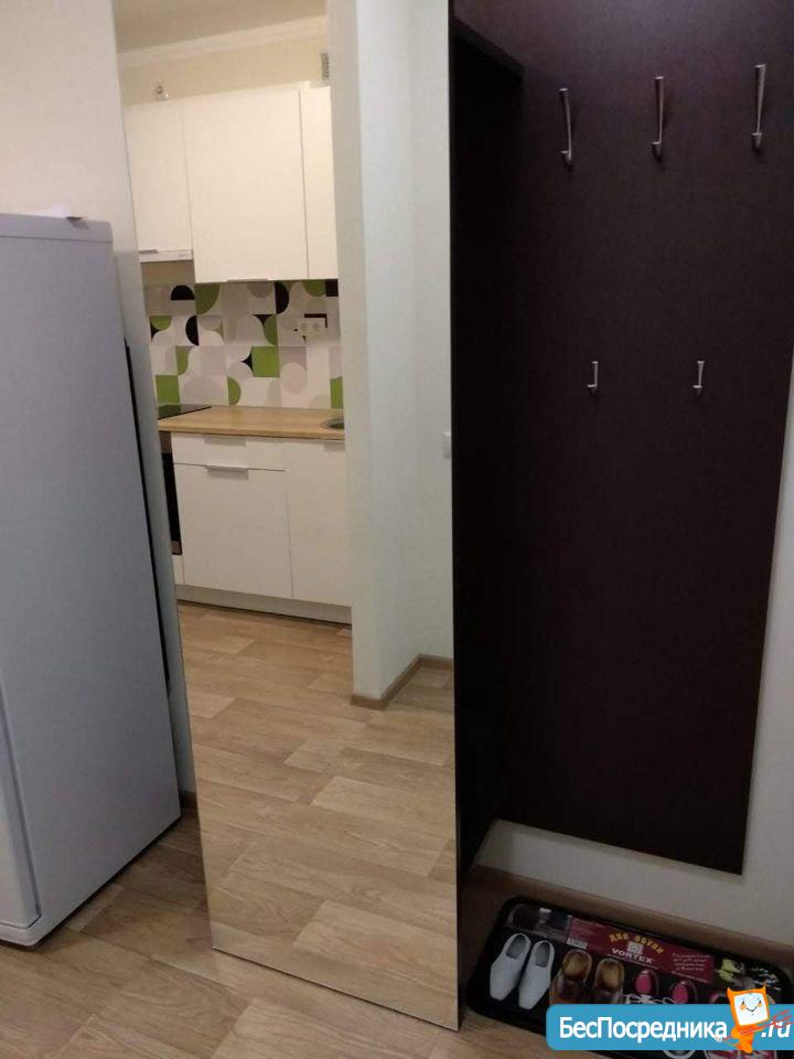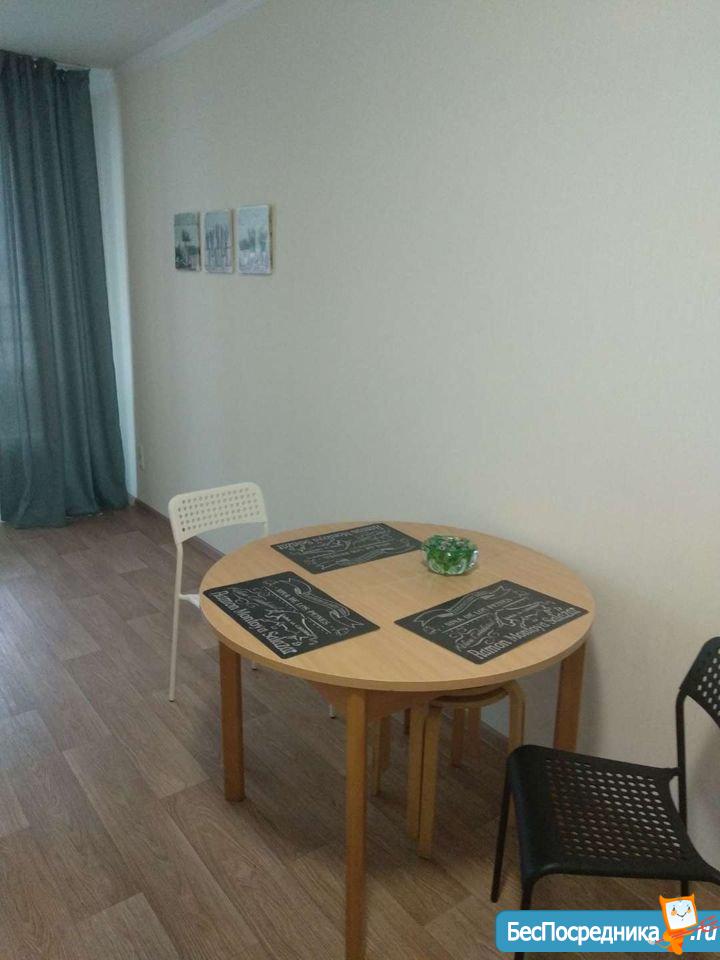 Уютная студия в доме комфорт-класса. Территория комплекса огорожена. До метро пр. Большевиков 18 минут пешком. Квартира с мебелью и техникой. Есть все необходимое. Балкон 7 кв. м. Аренда плюс КУ. Собственник.