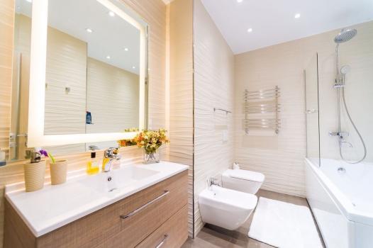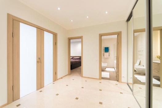 В квартире все готово для комфортного проживания, имеется вся кухонная техника с посудомоечной машиной, стиральная машина, робот-пылесос, ТВ с саундбаром, кондиционер, просторная гардеробная. Раскладной диван имеет ортопедический матрац.