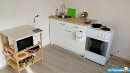 Техника: телевизор , интернет, варочная панель, вытяжка, холодильник, микроволновая печь, электрочайник, фильтр питьевой воды, стиральная машина.