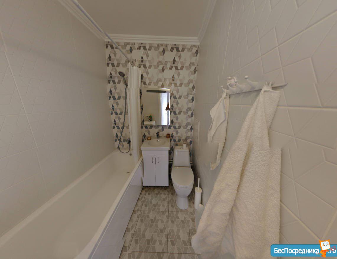 Санузел с качественной отделкой и сантехникой.