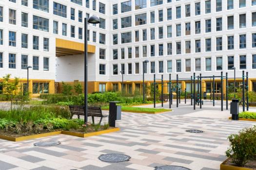 Территория ЖК закрытая, находится под круглосуточной охраной и видеонаблюдением. Закрытый двор с ландшафтным дизайном, детская и спортивная площадка.