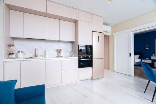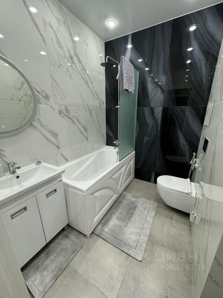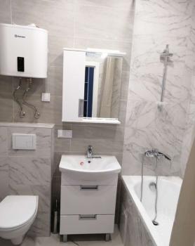 В квартире сделан качественный евроремонт, поэтому можно заехать и сразу жить без лишних хлопот. Просторная кухня площадью 15.6 кв. м оснащена всей необходимой мебелью и современной техникой, включая холодильник, посудомоечную машину , стиральную и сушильную машину. В комнате также есть вся необходимая мебель для комфортного проживания. Санузел совмещенный, в ванной комнате установлена ванна.