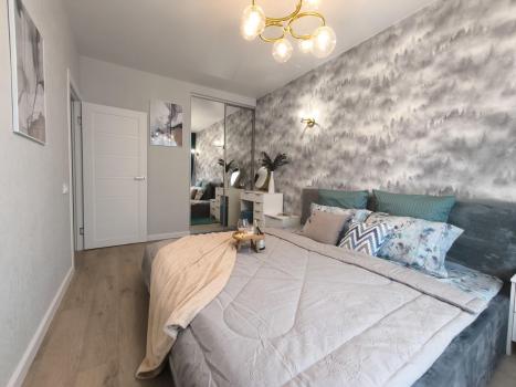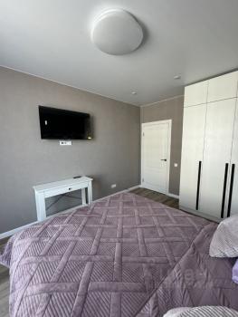 Квартира на 13-м этаже 18- и этажного дома , оснащена всей необходимой мебелью и техникой ( телевизоры на кухне и в спальне , посудомоечная машина , холодильник , духовой шкаф , варочная панель , стиральная машина ). Сделан качественный ремонт , двуспальная кровать 180*200 с ортопедическим матрасом , большая гардеробная , шкаф для хранения одежды. Квартира абсолютно новая , никто не жил .