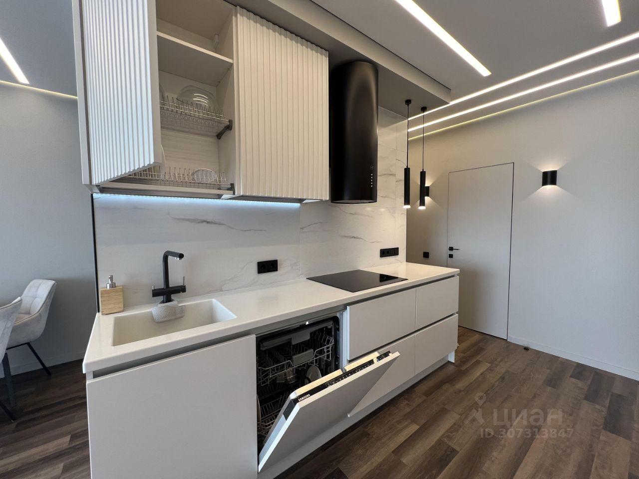 На кухне есть вся необходимая техника (холодильник, СВЧ, духовой шкаф, плита, вытяжка, посудомоечная машина, чайник, кофемашина), а также посуда.