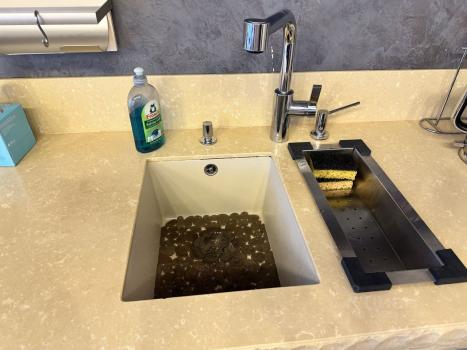 Из прихожей вход в гостевой санузел со стеклянной раковиной и железным унитазом! А также в прихожей есть хозблок-гардеробная, где можно разместить верхнюю одежду и находится бойлер и стиральная машина Miele.