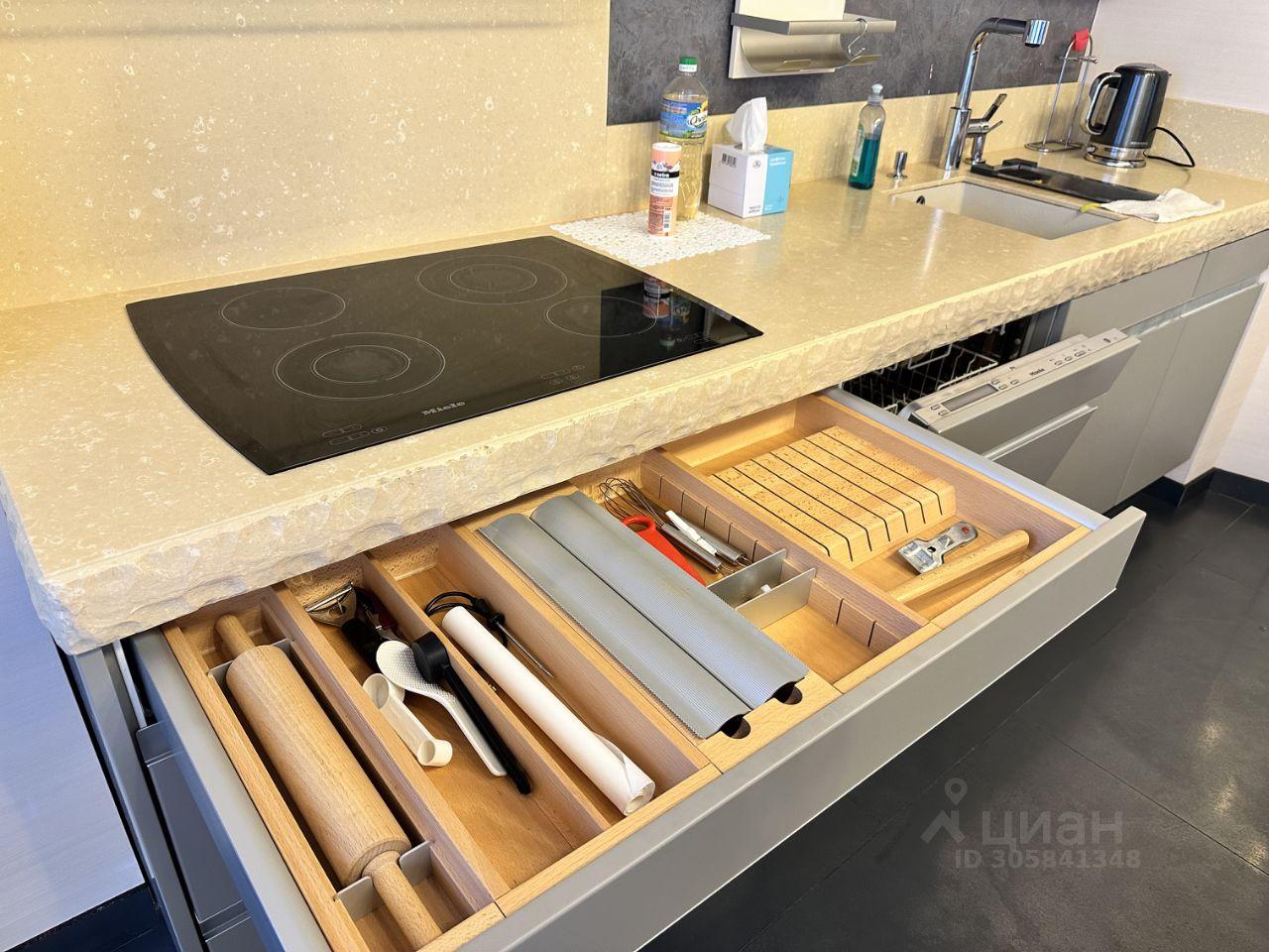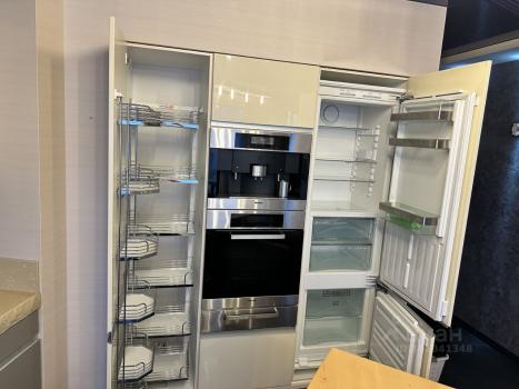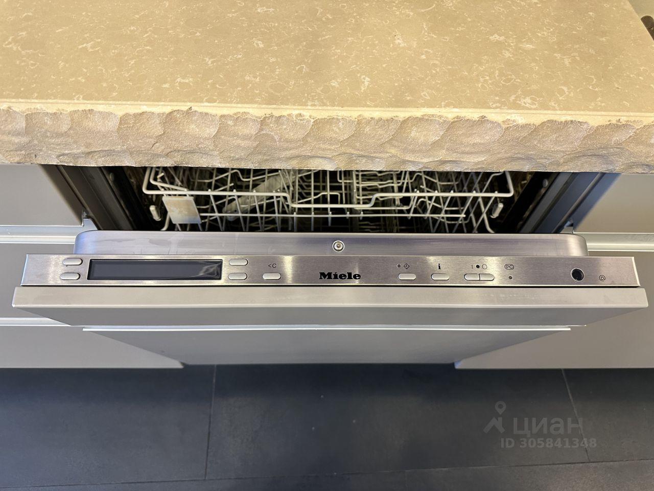 Кухня со встроенной посудомойкой, вытяжка, стеклокерамическая варочная панель, встроенная кофемашина, встроенный холодильник и духовой шкаф- вся техника на кухне Miele!