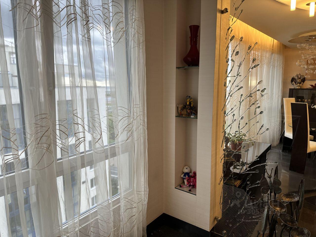 Из спальни вход в шикарную гардеробную с огромным зеркалом во всю стену, а также вход в хозяйский санузел с окном, где расположена ванна в зеркалах, унитаз, биде, раковина, зеркало, в том числе и увеличительное с подсветкой, полотенцесушитель и встроенная душевая кабина с эффектом сауны. Из спальни - через красивейшие раздвижные двери из литого стекла с узорами - выход на просторную лоджию с видом на залив!