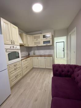 Сдам 1-комнатную квартиру в новом доме на длительный срок. Ремонт свежий, качественный. В квартире уютно и просторно.