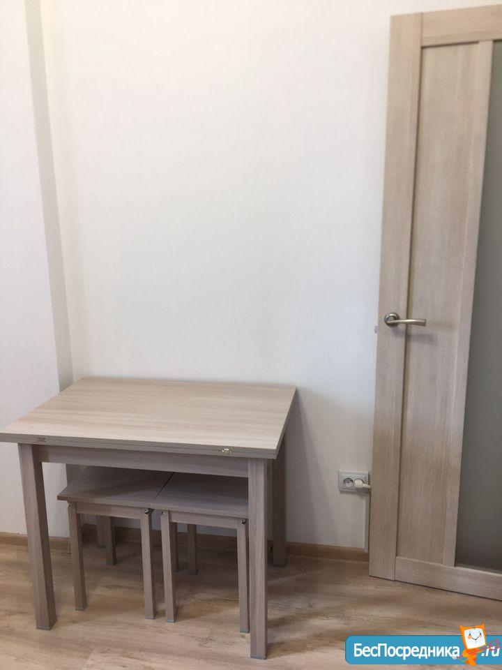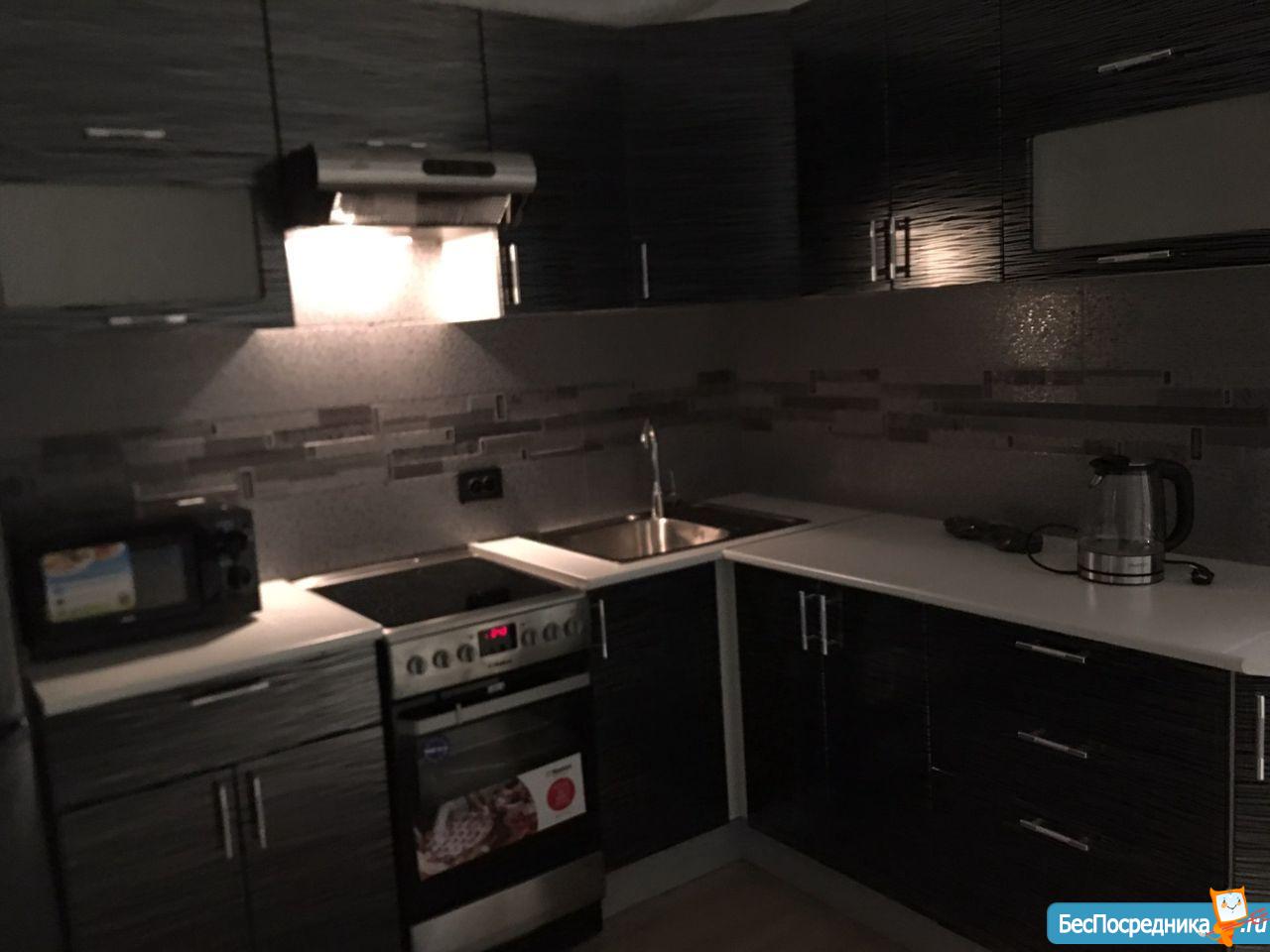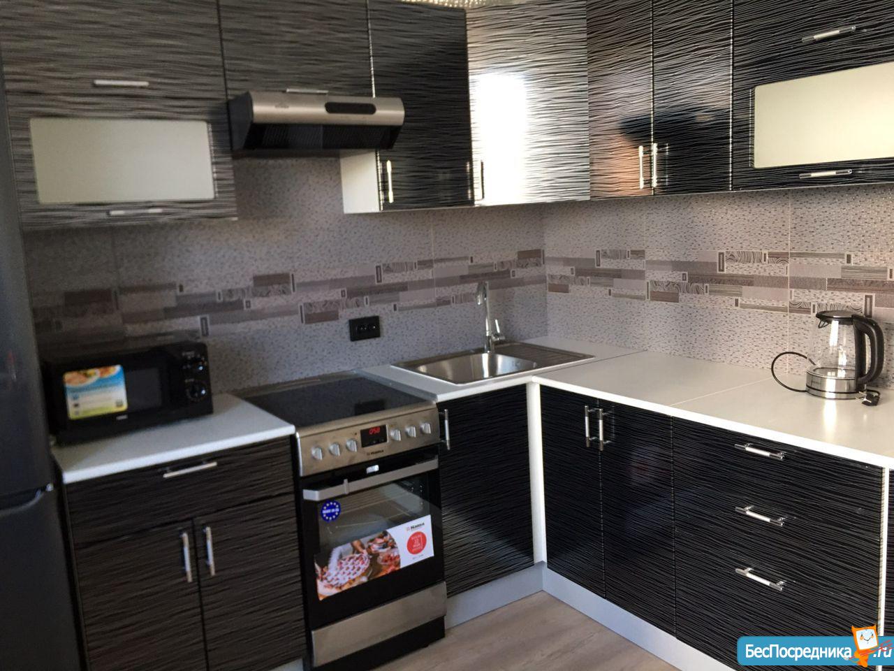 В квартире есть все необходимое: диван-кровать, вместительный кухонный гарнитур, большой вместительный шкаф, плита, духовка, микроволновая печь, стол-трансформер, холодильник, стиральная машина. В квартире остаётся много посуды, и другой мелочи для жизни. Вся мебель новая, очень хорошего качества.