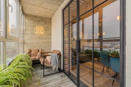 Квартира с утепленной невероятно уютной лоджией с деревянными стенами и потолком и великолепным панорамным видом на Петроградскую сторону, телебашню и данную часть города. Особенно впечатляющим становится этот вид вечером, когда город окутывает световая панорама.
