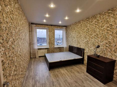 Большая светлая гостинная с вместительным гардеробом и диваном. Теплая, уютная спальня с удобной кроватью и журнальным столиком. Большая лоджия с выходом из спальни и кухни. В квартире проведен интернет, WIFI включен в стоимость аренды.