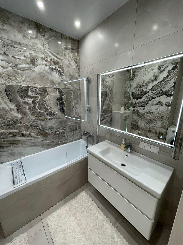 В квартире выполнен качественный ремонт, она очень уютная и теплая. В коридоре, ванной и на кухне - керамогранит и плитка с подогревом. В спальне и гостиной - дубовая доска. Есть вся необходимая техника и мебель для проживания. Кухня ИКЕА со встроенной техникой: посудомоечная машина, холодильник, индукционная плита, вытяжка, духовка Bosch (с функцией микроволновки). Комфортная зона отдыха с новым диваном и большим телевизором Philips. Много мест для хранения. Просторная спальная с большой кроватью и матрасом Ascona. Большой санузел с огромной ванной, стиральной машиной Bosch и местами для хранения.