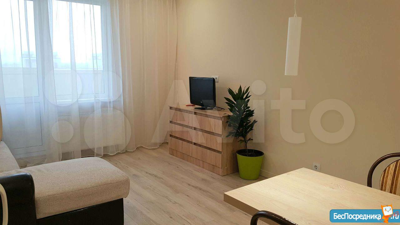 Сдается однокомнатная квартира для граждан РФ площадью 35,8 кв. м, чистая просторная кухня-гостинная 14 кв. м., с выходом на лоджию, спальня 13 кв. м., совместный санузел, парковочные места и детская площадка во дворе.