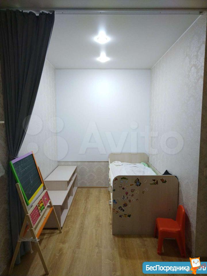 В квартире мебель, ламинат, натяжные потолки.