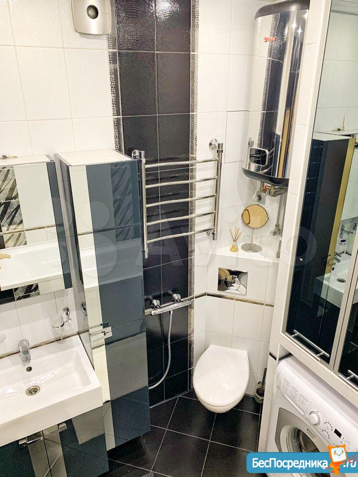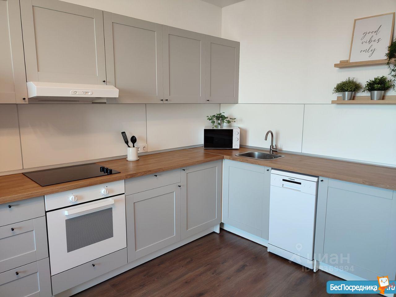 Из бытовой техники есть: встраиваемые духовка и варочная поверхность, печь СВЧ, холодильник, умный телевизор 43, стиральная машина, вытяжка, посудомоечная машина.