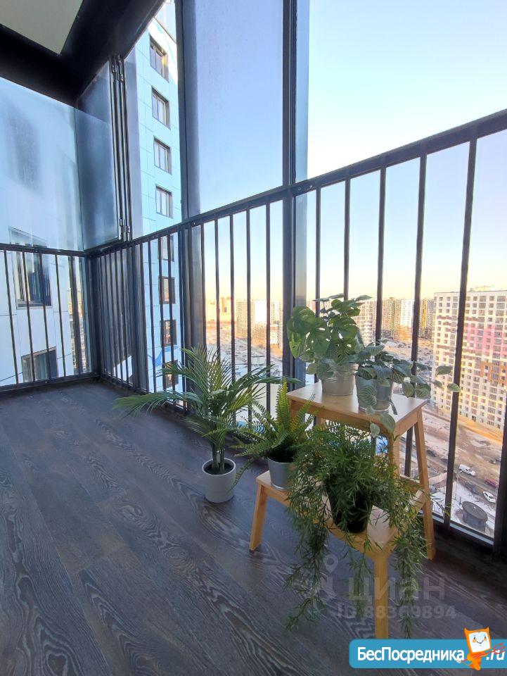 Лоджия с панорамным остеклением. Высокий этаж, от этого в комнатах много света.