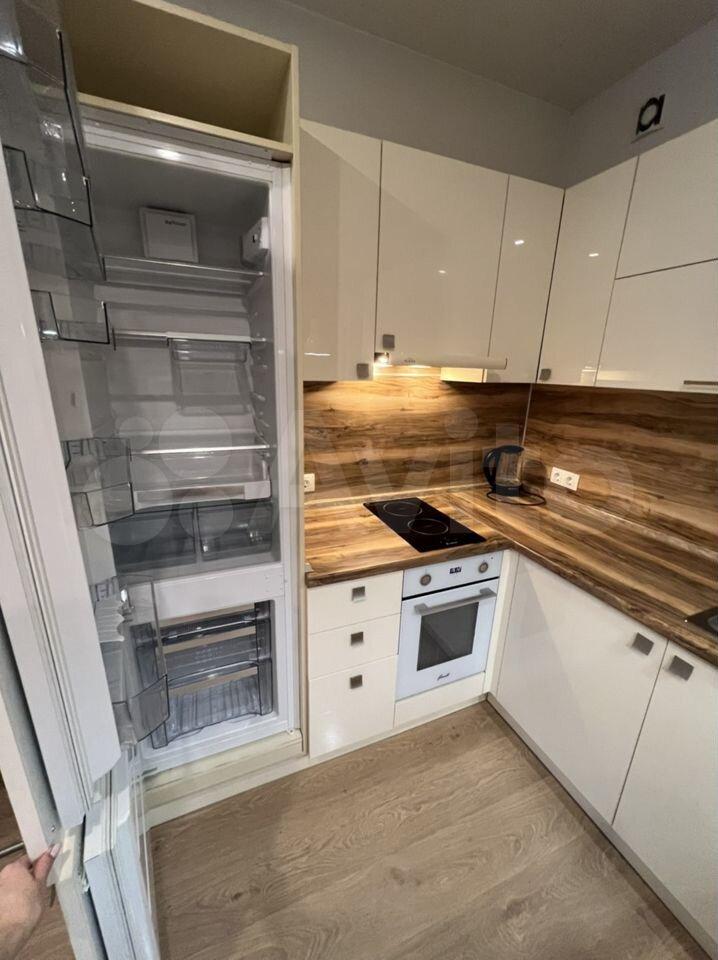 ✅ Полностью оборудованная кухня: холодильник, варочная панель, духовой шкаф, электрический чайник, СВЧ печь, вытяжка с выводом в вент шахту, фильтр для питьевой воды;