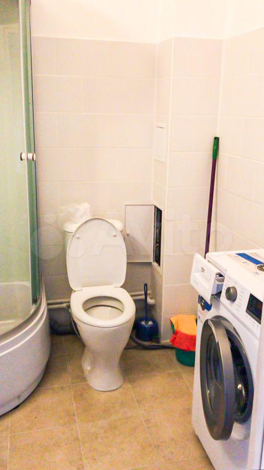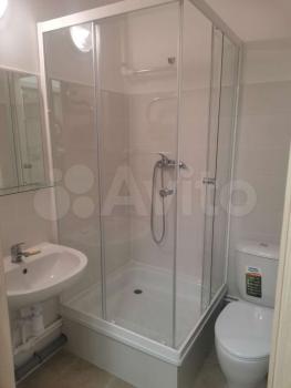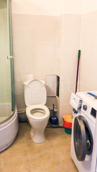 Санузел совмещённый, просторный, душевая кабина, стиральная машинка.