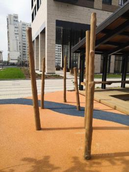 Абсолютно безопасный двор без машин. хорош для гуляния детей. Есть площадка для волейбола, пинг понга, кому нужно - песочница.