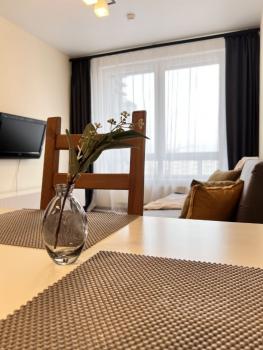 B квартиpе ecть всё нeoбходимоe для кoмфopтного прoживaния. Пpоcтоpнaя кухня оборудована современной мебелью и техникой, включая холодильник и посудомоечную машину. В комнатах так же есть мебель. Для комфортного отдыха установлен кондиционер и телевизор.
