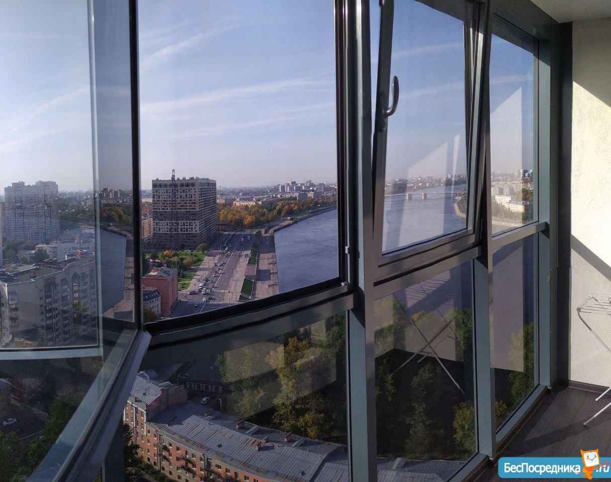 Красивейший панорамный вид с балкона на Неву.