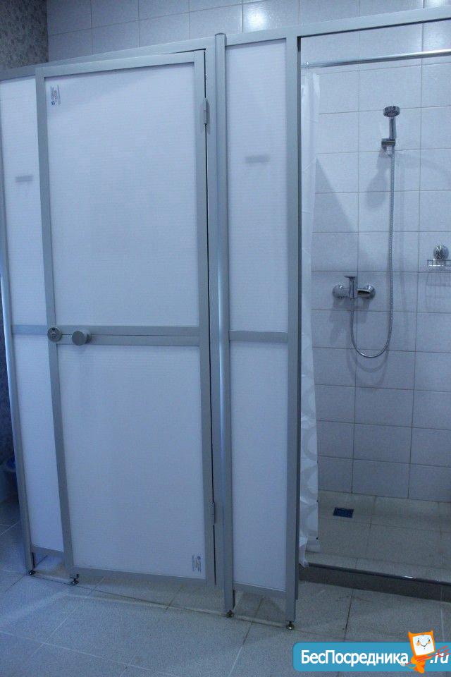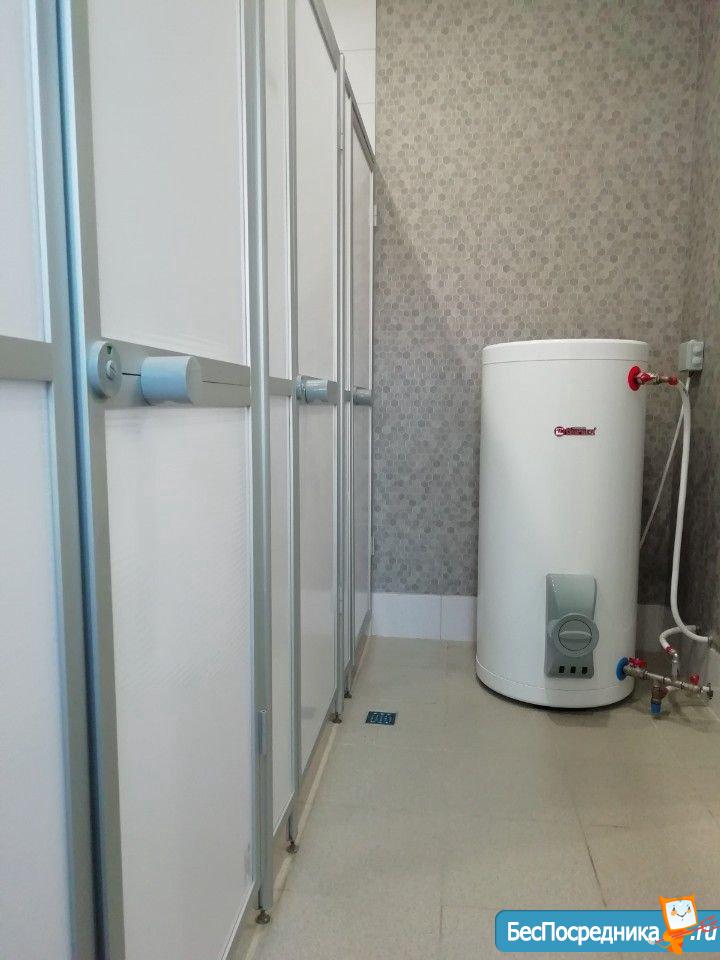 Санузел совмещенный с душевой кабиной. Бойлер на 70 литров всегда обеспечит теплой водой.