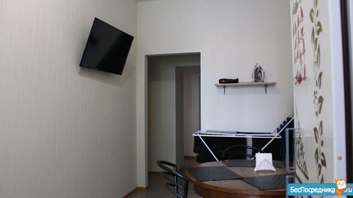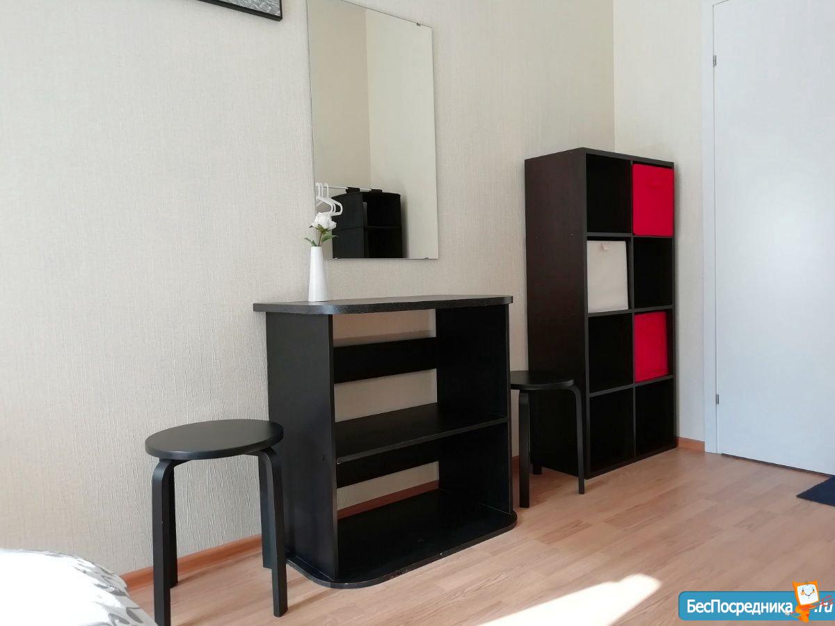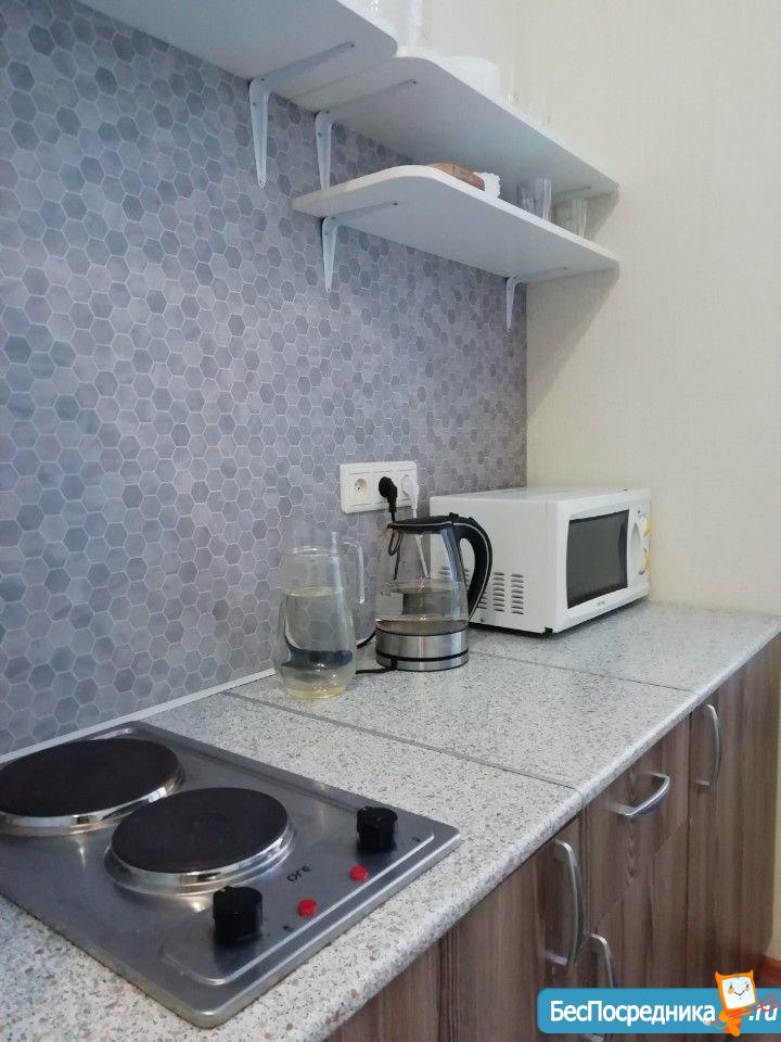 Квартира состоит из прихожей зоны с большим шкафом с зеркальными створками; просторной кухни-гостиной, укомплектованной кухонным гарнитуром, холодильником с небольшой морозильной камерой , встроенной техникой(варочная поверхность индукционная, ПММ), стиральной машиной, большой телевизор SmаrtТV. Есть фильтр питьевой воды.