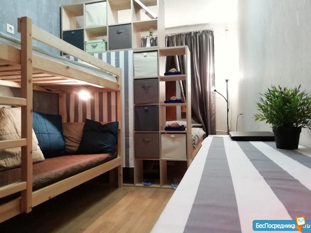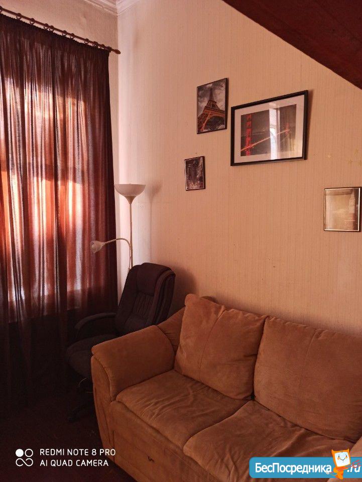 Потрясающая двухэтажная комната в центре Петроградки! На втором этаже полноценная комната, первый этаж зонирован - кухня-прихожая, зал, спальня. Балкон с видом на шпиль Петропавловской крепости) Места общего пользования в очень хорошем состоянии, соседи семейные, в квартире не курят. Есть все - посуда, стиральная машинка, сушилка, утюг, гладильная доска, микроволновка, чайник, мультиварка. В стоимость включена коммуналка и свет. Залог можно разбить на 2 части. Без посредников!