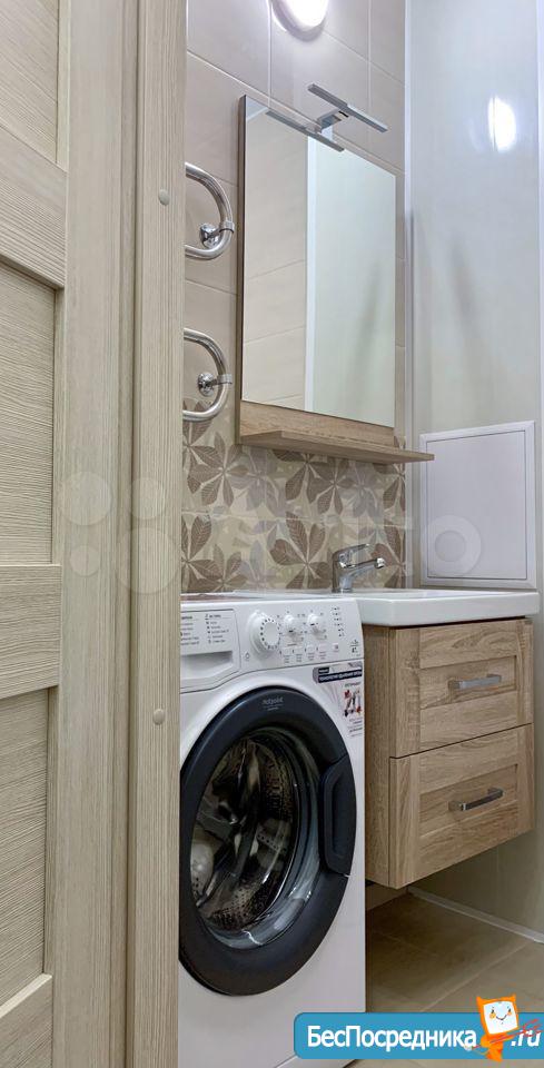 Зимой в квартире тепло. Ремонт и мебель свежая. Из техники: стиральная и посудомоечная машины, плита, двухкамерный холодильник, встроенная микроволновая печь, духовка, вытяжка, телевизор.