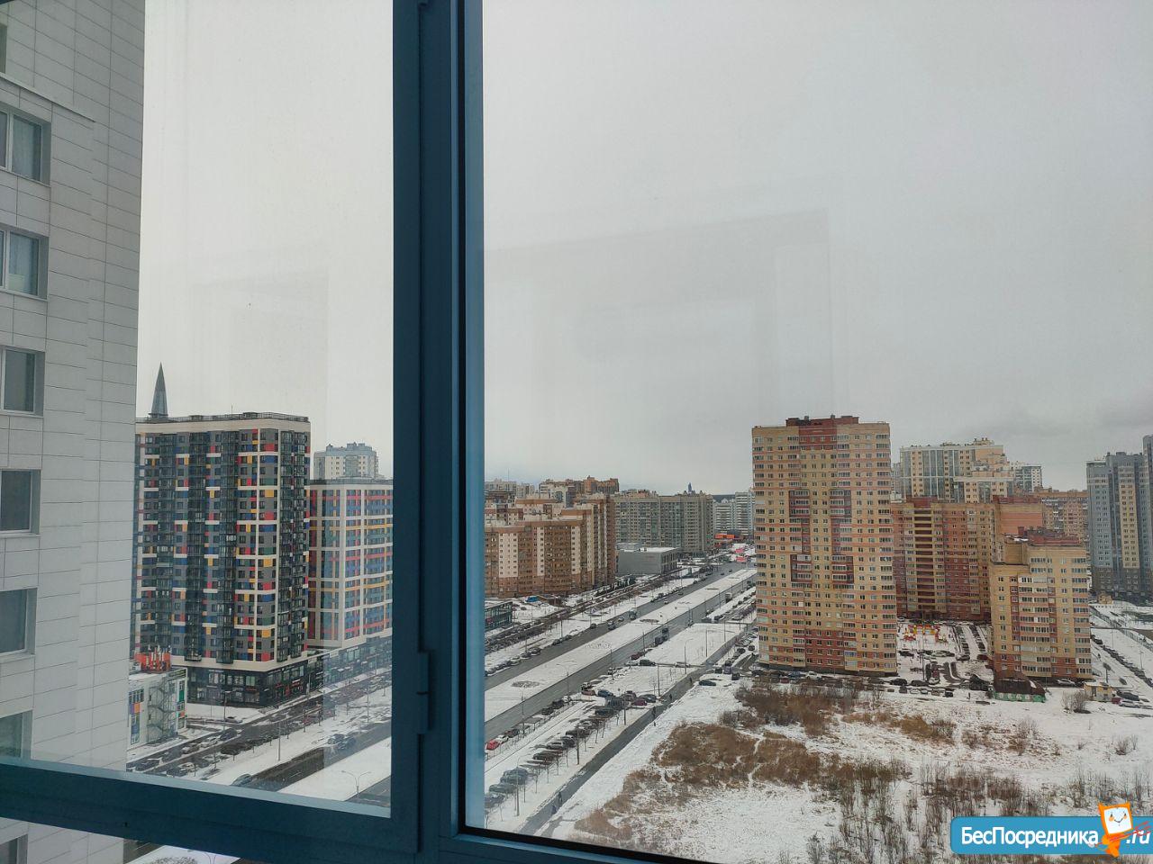 Стиральная машинка, плита, микроволновая печь, чайник, холодильник, 2-х спальный диван, шкаф, остекленный балкон 5 м2. с видом на Лахта центр и залив. На окнах шторы блекаут.