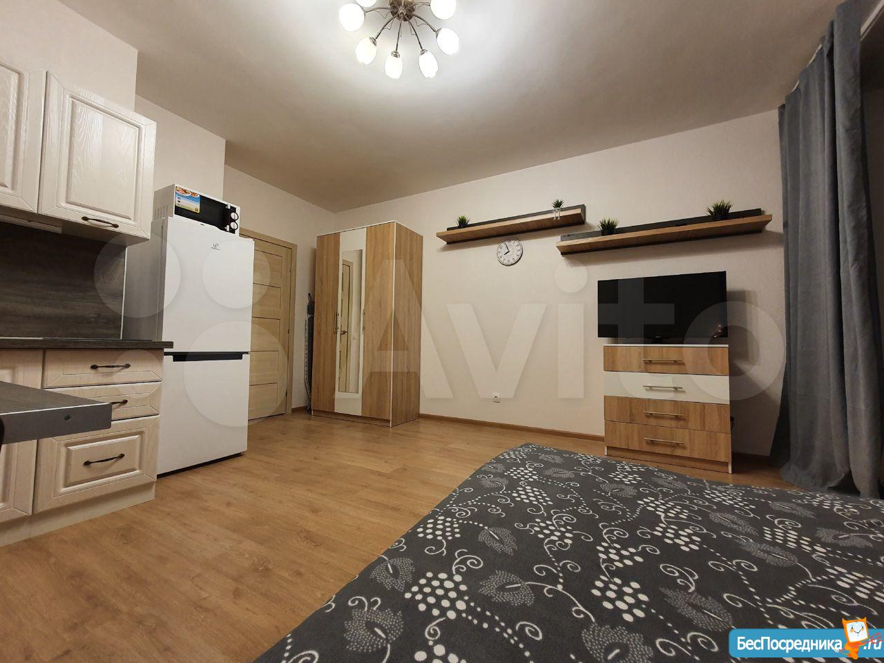 Сдам отличную студию от СОБСТВЕННИКА! Квартира очень светлая и тёплая, оборудована всей необходимой техникой. Есть кухонный гарнитур, раскладной диван, шкаф и т.д..