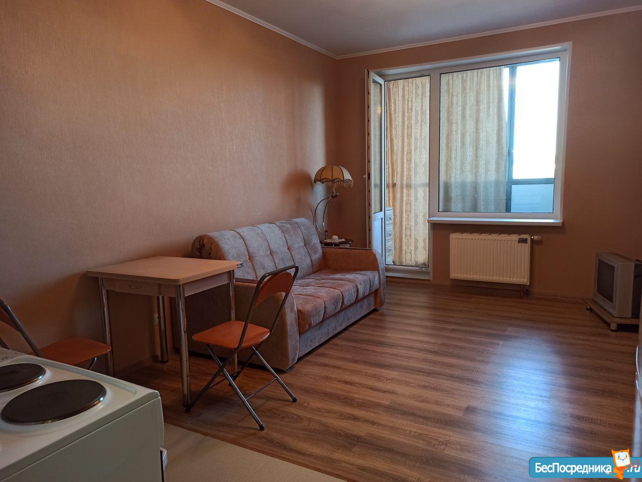 Сдам студию в НОВОМ ДОМЕ. Новая кухня, холодильник, стиральная машина, сдается впервые.На длительный срок. Квартира теплая, уютная, красивый вид из окна.