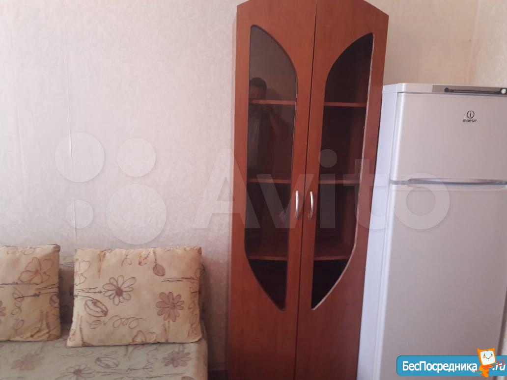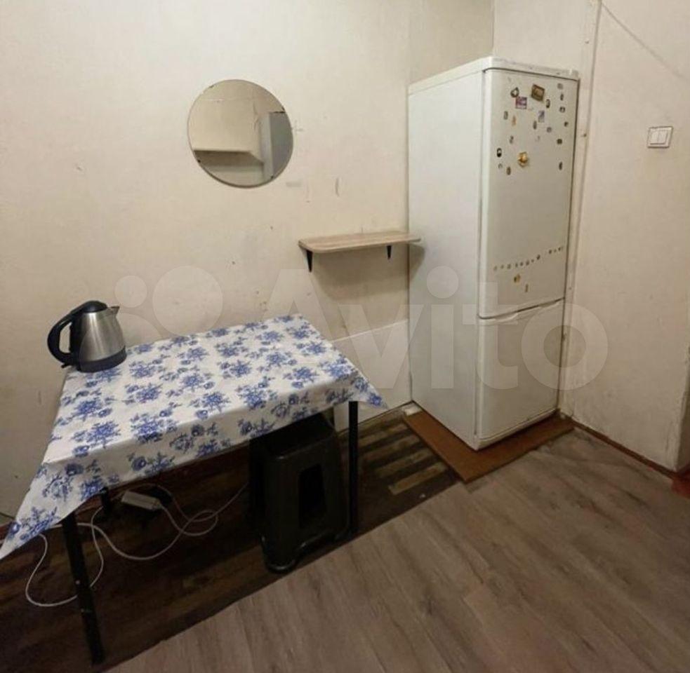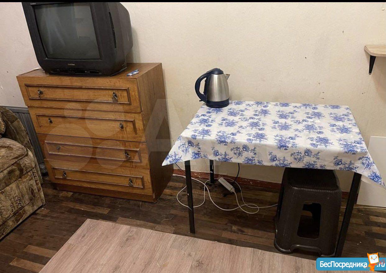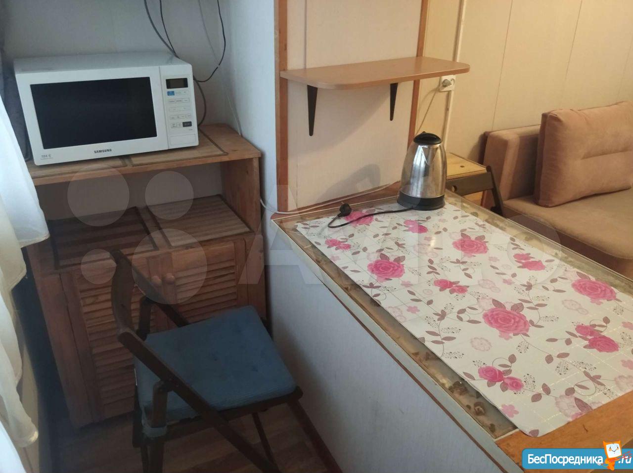 В комнате есть холодильник, диван, стол, стулья, место для приготовления пищи в т.ч. чайник, мини-печь, места хранения + застеклённая лоджия 3м. В коридоре личная стиральная машина.