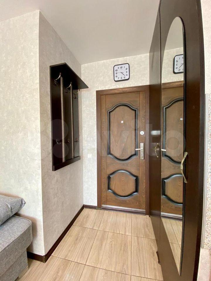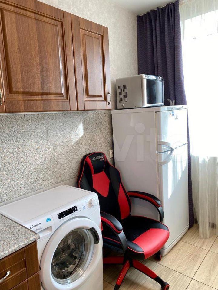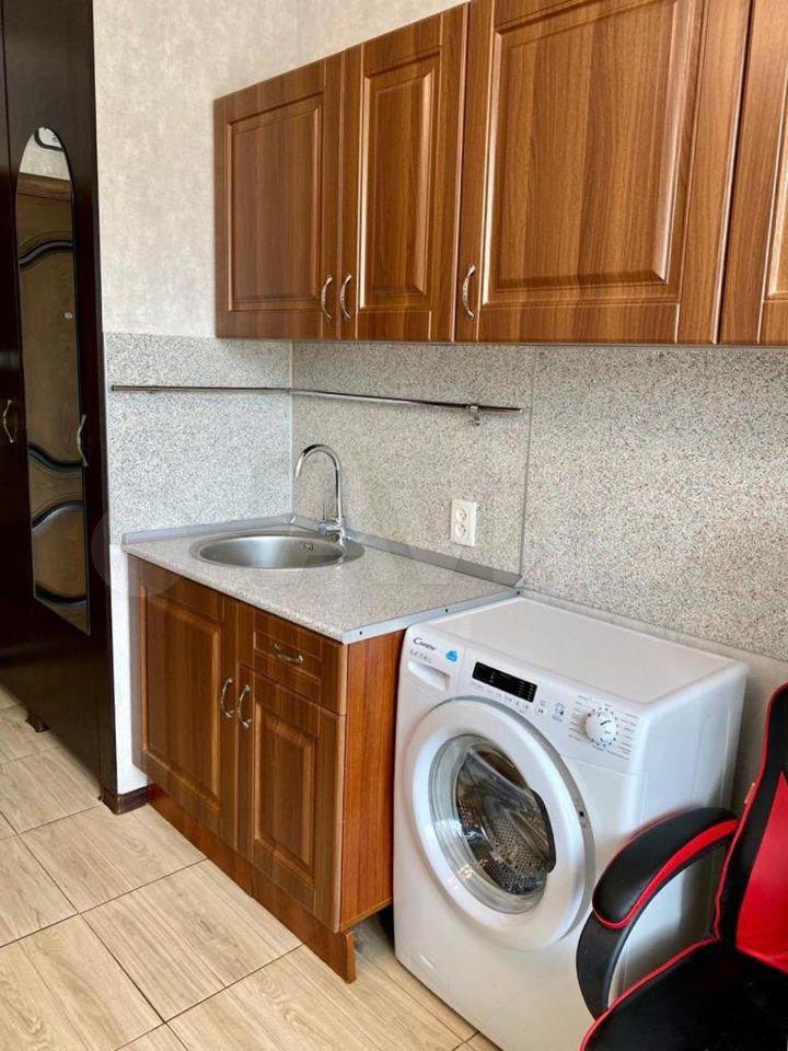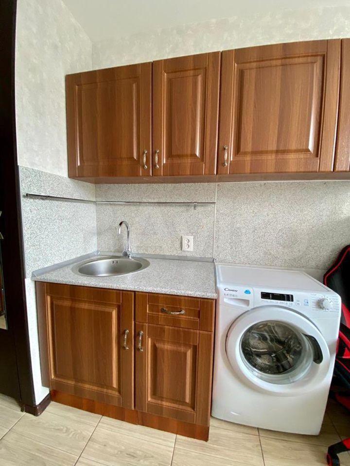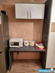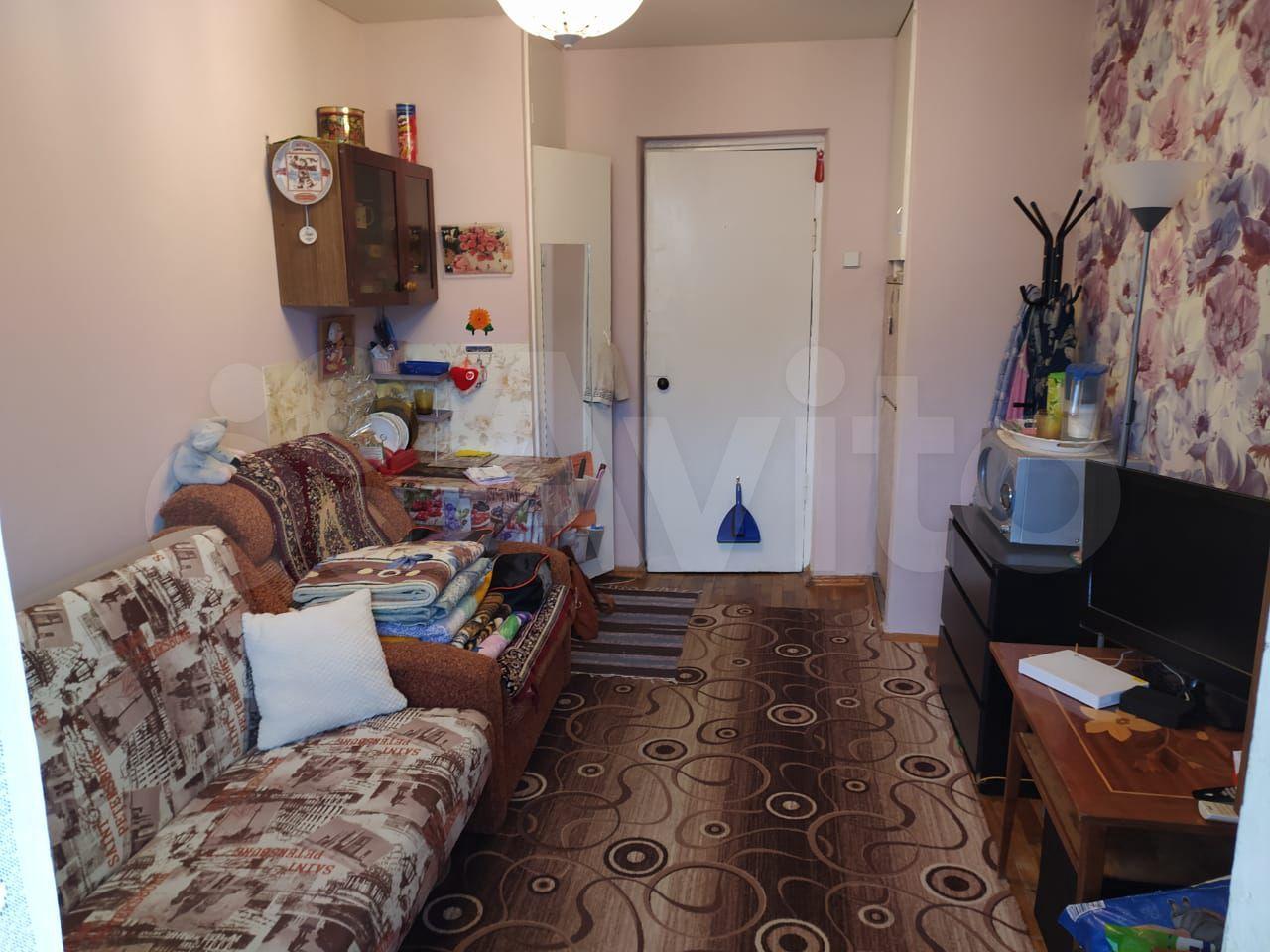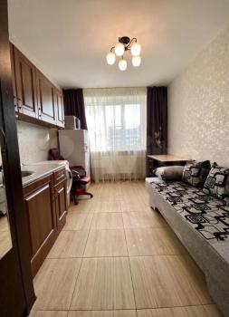 В комнате есть холодильник, диван, стол, стулья, место для приготовления пищи в т.ч. чайник, мини-печь, места хранения + застеклённая лоджия 3м. В коридоре личная стиральная машина.