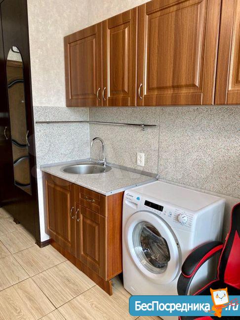 В комнате находится мини-кухня и раковина.