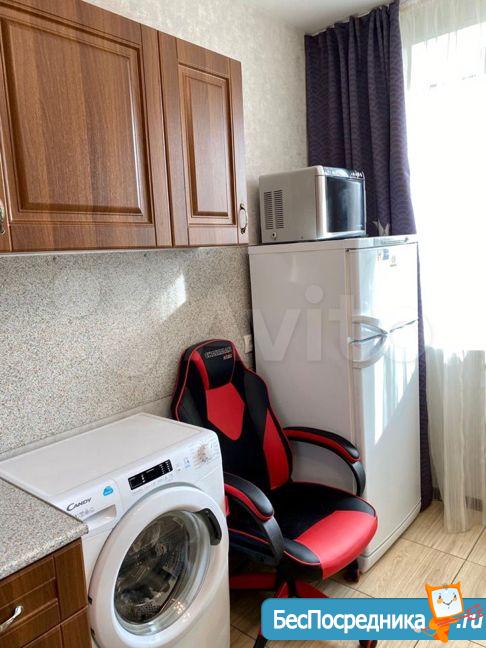 - в комнате диван, шкаф, стиральная машина, холодильник,