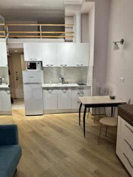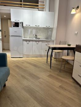 Уютная квартира-сиудия. Есть вся техника для комфортного проживания- холодильник, микроволновая печь, посудомоечная,стиральная и сушильная машина.