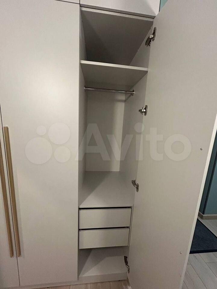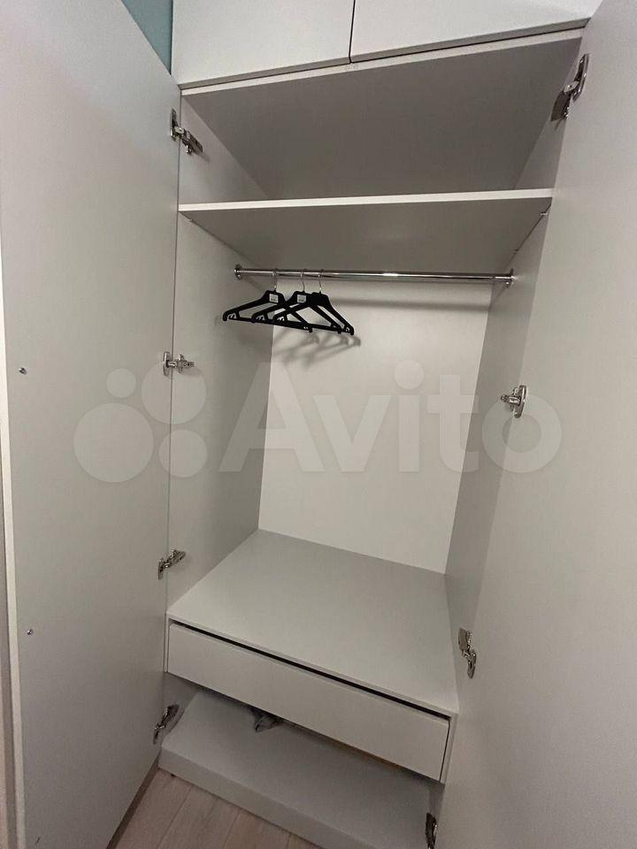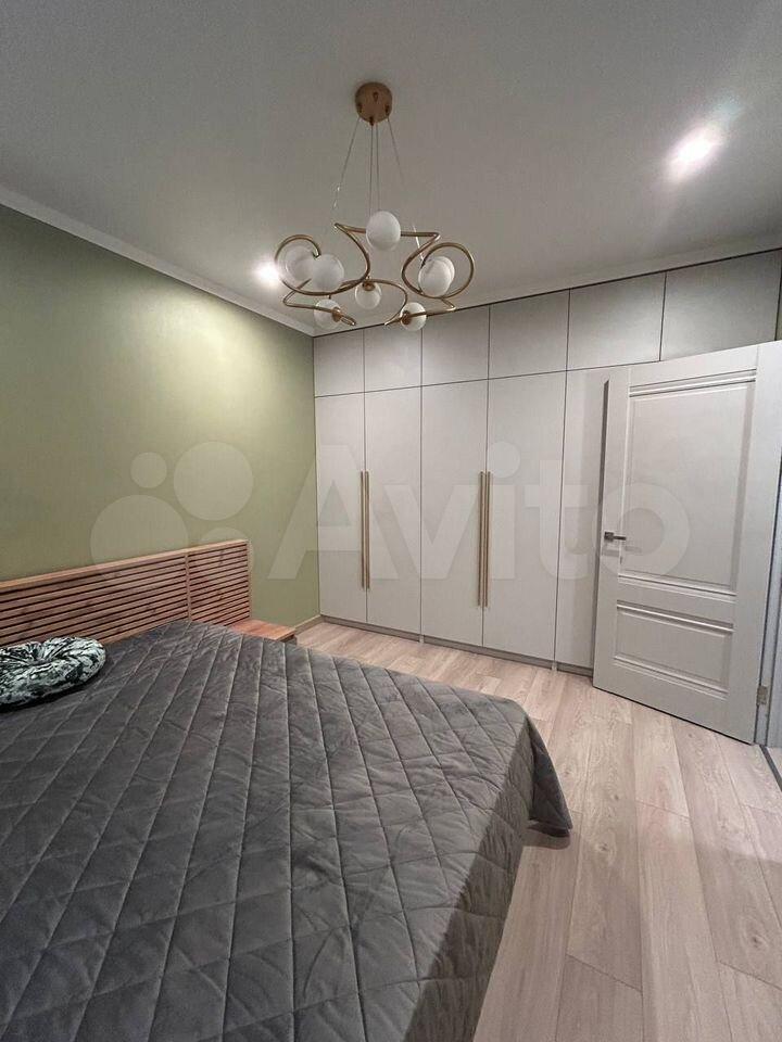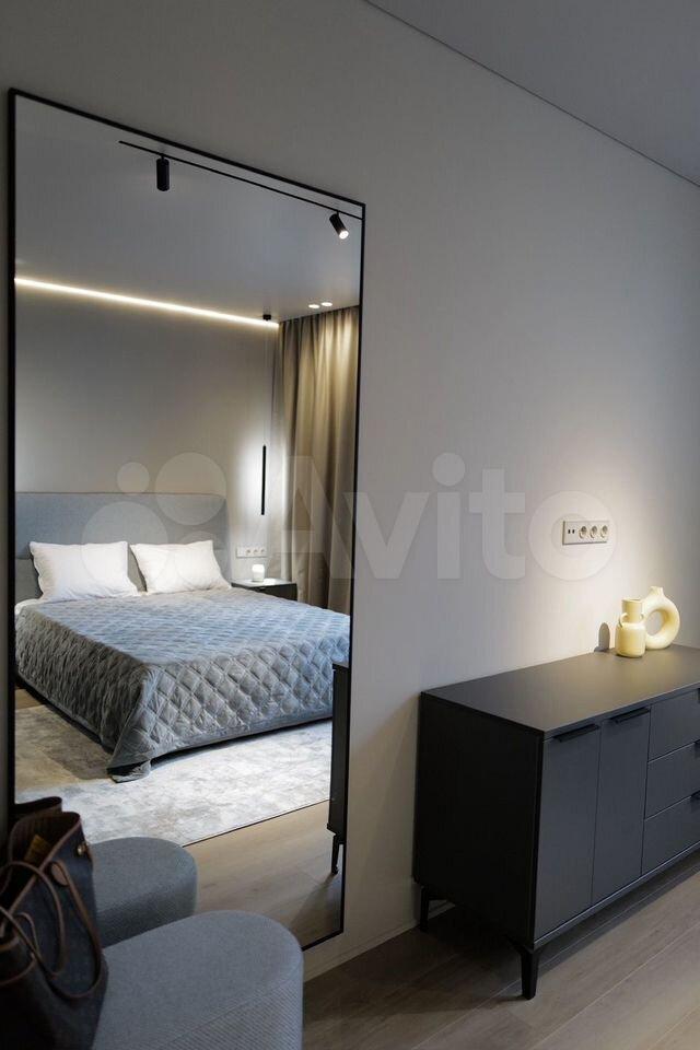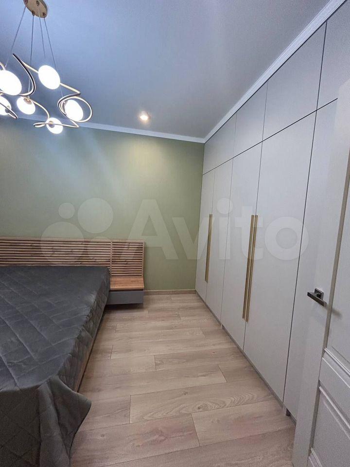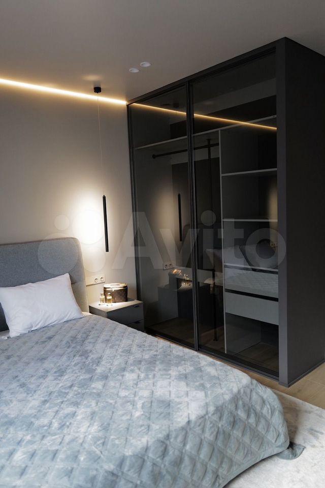 В спальне двухместная кровать с новым матрасом, прикроватные тумбочки, просторный платяной шкаф, и для гостей раскладное кресло. В коридоре шкафы для хранения вещей, телевизор на кухне и в спальне, кондиционер, интернет.