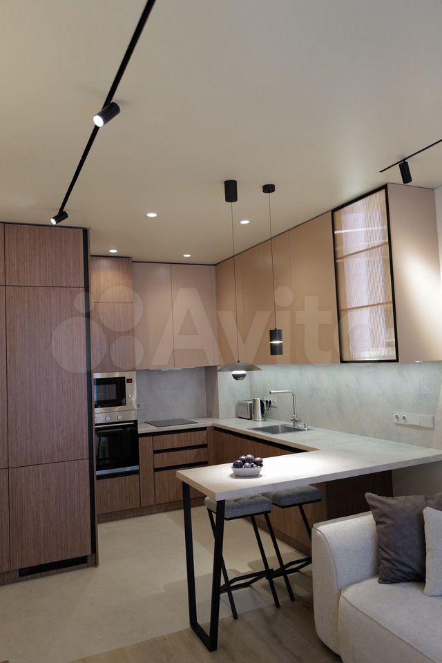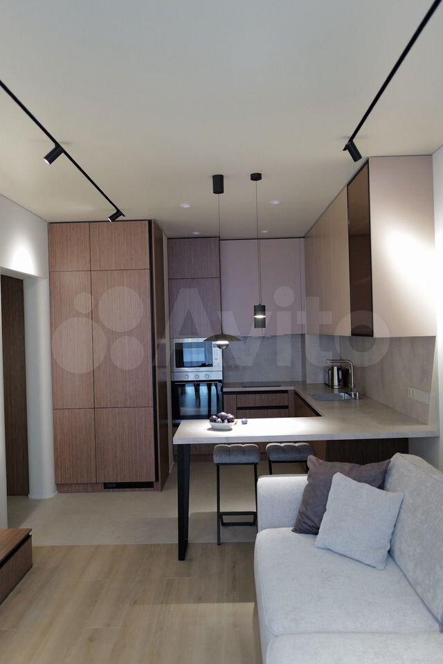 Кухня оснащена всеми современными приборами, лаконично встроенными в кухонный гарнитур: посудомоечной машиной, духовкой, варочной поверхностью, большим холодильником. Вся техника и мебель новые. В гостиной удобный диван .