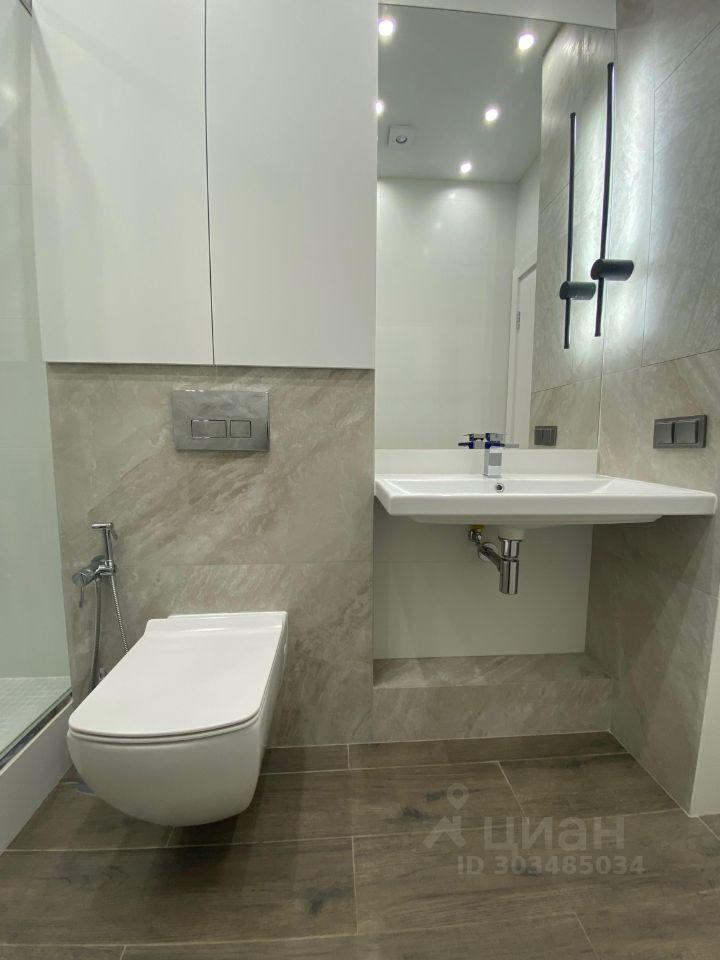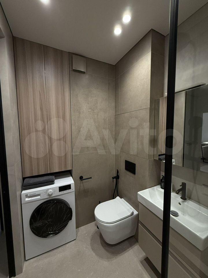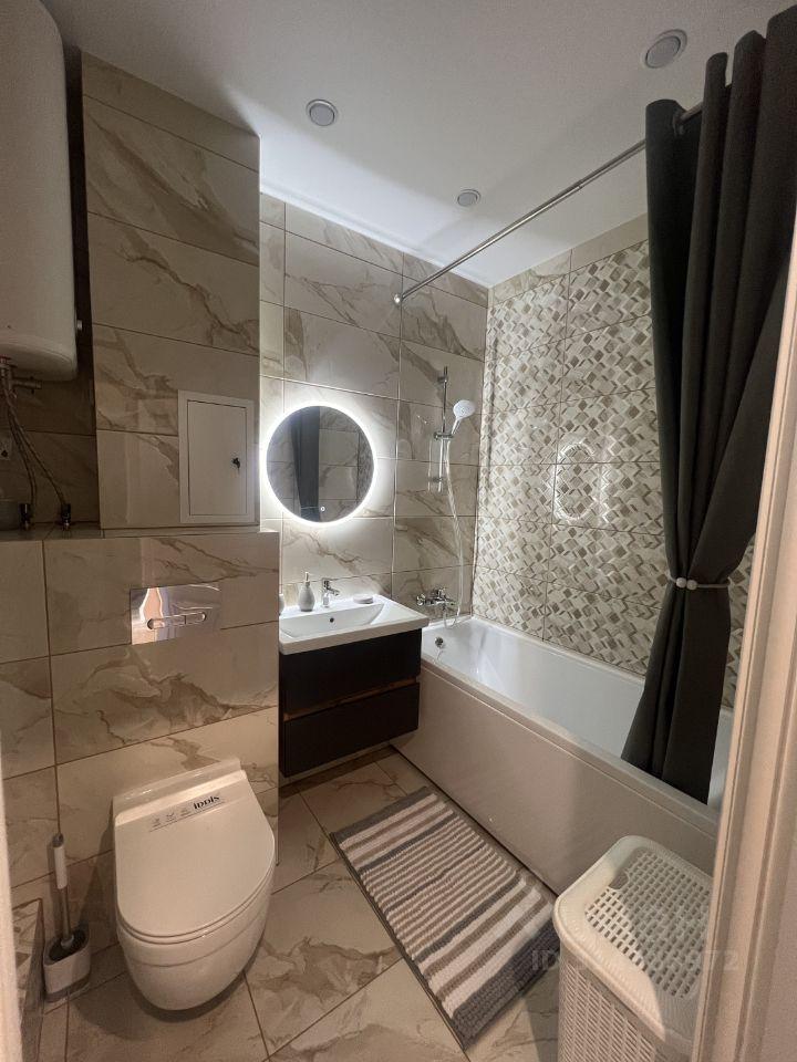Сан. узел совмещенный : душевая кабина. Стиральная машина. На кухне и в ванной комнате установлен тёплый пол. В доме подземный паркинг на два этажа. Квартира сдаётся с подземным паркингом на 1 этаже рядом с лифтом этой же парадной(если есть А/М)