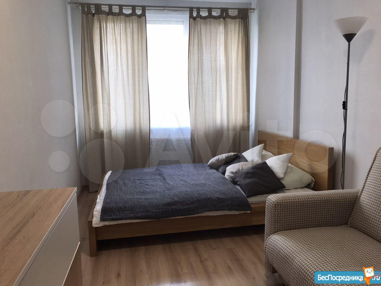 Сдаётся однокомнатная квартира светлая и просторная. Рядом с домом парковка, остановка общественного транспорта и пункт охраны. В доме всего один подъезд, мало квартир и жильцов на этаже. Все тихо и спокойно. Окна выходят на парк. В квартире предусмотрено все для длительного проживания. Есть комфортная мебель, кровать с ортопедическим матрасом, диван, подушки, одеяло, набор посуды и столовых принадлежностей, утюг, сушилка для белья, организовано рабочее место и проведён интернет. Заезжай и живи! Квартира свободна и готова к заселению. Залог 1 месяц, можно разбить. Никаких комиссий. Квартира сдаётся от собственника. Дополнительно оплачиваются ку.